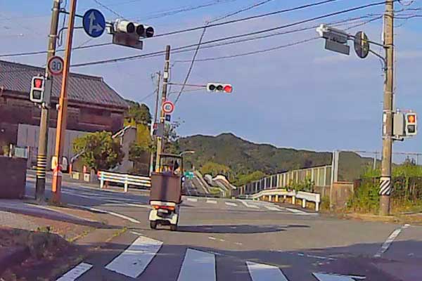| ①、② ウーバーイーツの配達員と思しき人、後ろから猛スピードで追っかけてきました。 ③、④ と見るや、すっと鮮やかに私の車の前に出ました。ここまではバイクの人には良く見かける光景です。 ⑤ が、アラマア、ビックリ!信号は赤のままなのに飛び出していきました。 よほど急ぎの配達でもあったのかしら? |