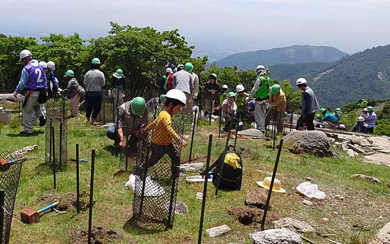 山の斜面なので足場の確保につかれました。それほど急こう配でもありませんが、このような場所での作業は初めてです。頂上へ着いた時は寒くて上着を羽織りましたが、作業を終えれば心地よい汗となりました。