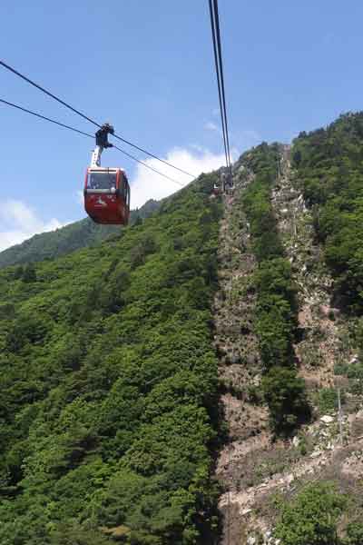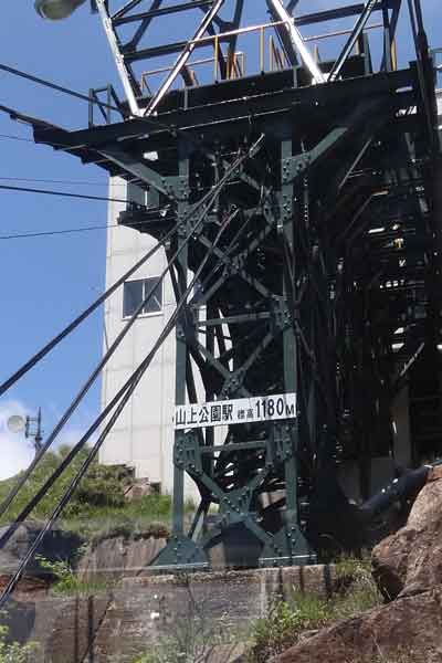 心配したほどには揺れなかったので、ゆっくりと景色を楽しむことができました。大きな鳥のような形をした岩がそびえ立っています。山上公園駅は標高1180mとなっています。