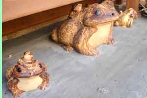 | 思わぬところでカエルさんがお出迎えです。 “無事カエル”と見守っていてくれるのでしょう。 足湯のサービスもありました。冷たい風の中、ほっと一息の心遣い。 |