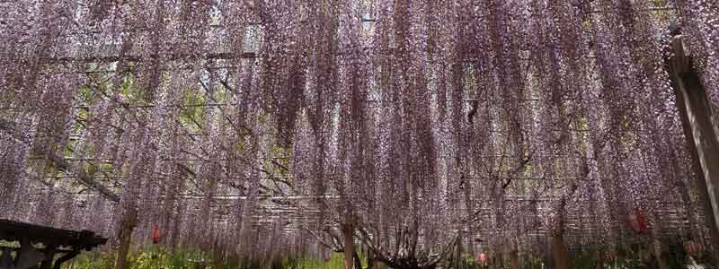 来年の花のために、後数日で房を切り落とすんだそうな・・・もったいない。 足湯につかりながら、藤の観賞もいいものですね〜。