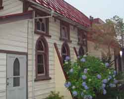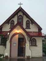 暮れ行く街並みを眺めながら教会に到着。 福島聖ステパノ教会の立て札がなければ見逃してしまいそうなほど、こじんまりとした建物です。 建設から100年経っているという、木造ですが随所にヨーロッパの建築様式を取り入れられた、英国の国教会の流れをくむ日本聖公会の教会です。 外観だけ見せていただいて、1千年の歴史がある福島の鎮守さま、稲荷神社へと急ぎました。 |