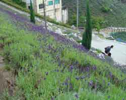 全体に雪が積もったような、大きな山が見えてきました。 阿武隈山です。 ちょうどラベンダー祭りが開催されていました。 舞台のほうからは♪ペッパー警部!!♪と懐かしい歌が聞こえてきます、まさか本物が?一瞬ラッキーと思ったのですが・・・そっくりさんが歌っているところでした。ちょっと残念。 |