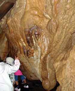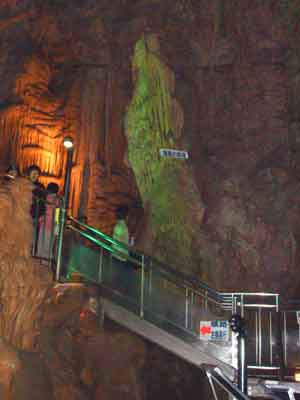 点在する照明を頼りに上を見たり横を見たりと、鍾乳石の不思議な形に気をとられながらも、