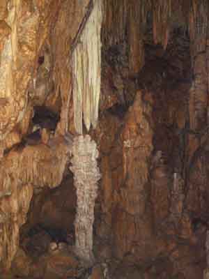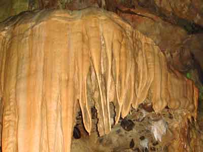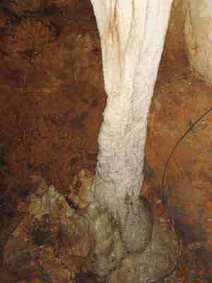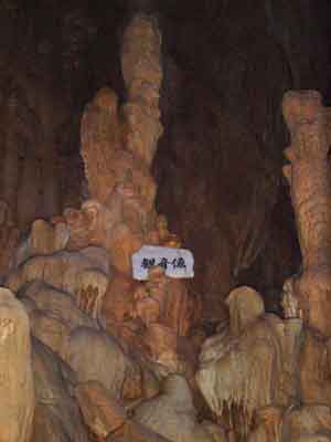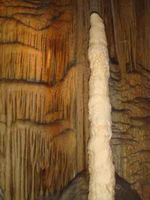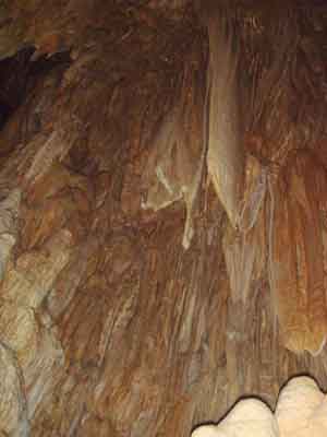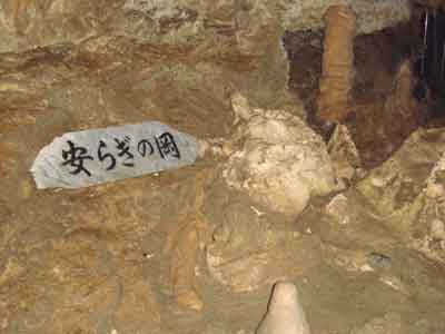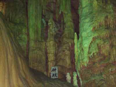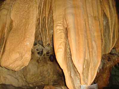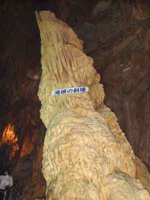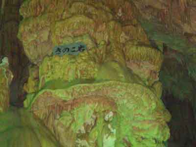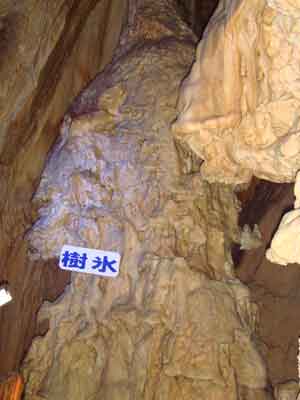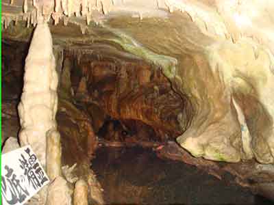 | A | 鍾乳石が出来るには 中性に近くなった水に溶け込んでいた炭酸カルシュームが、洞穴の天井や、壁面などを流れるときに再び固まったものが鍾乳石です。 |