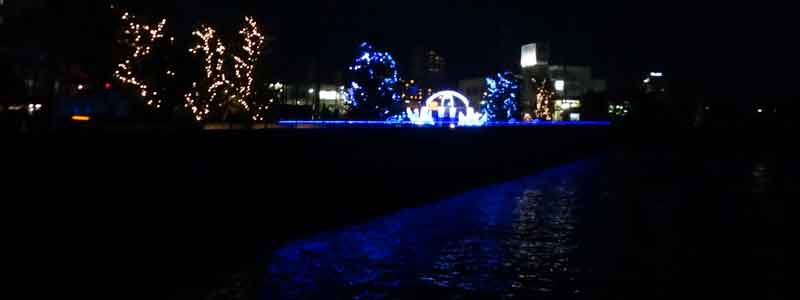 近鉄鳥羽駅から交番の前を通り抜けてカモメの散歩道まで行くとイルミネーションが輝いています。