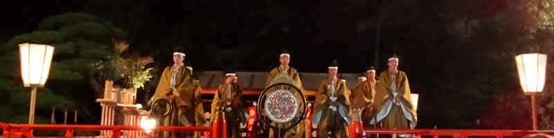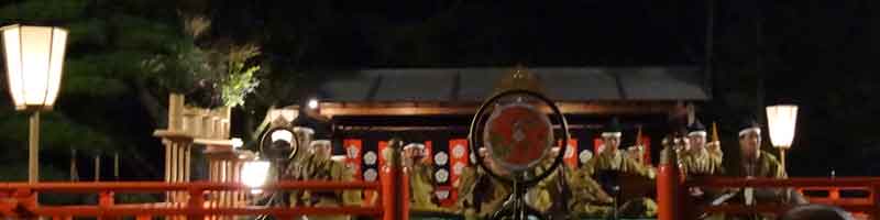 昭和23年より外宮勾玉池池畔でおこなわれてきた神宮観月会が、昨年と今年は内宮神苑の特設舞台で行われました。 短歌、俳句共に特選、入選、佳作の方々の表彰式があり、その後、神宮楽師により和歌と俳句を披講し、併せて奏楽が行われました。 講師は作者名に続き、献詠歌を5.7.5.7.7に区切って一句ずつ語尾を伸ばして詠みあげ、次に発声が節をつけて詠い始めます。第二句からは発声のリードのもと講頌が唱和して作品を鑑賞します。なんとも厳かな雰囲気に包まれたひと時でした。 満月も時折雲間から顔を出し、柔らかな光を注いでくれました。 |