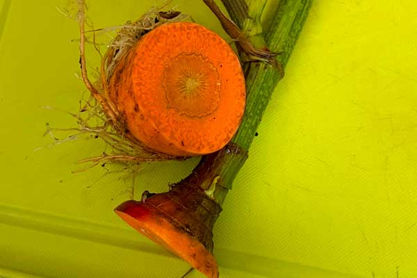 以前の写真よりニンジンの花が開いてきました。で、ニンジンを恐る恐る収穫。まだ鬆は入っていなかったので夕飯にいただきます。