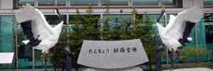 この像は旧千円札の裏面デザインになった丹頂鶴の求愛のポーズをモチーフに作られています。