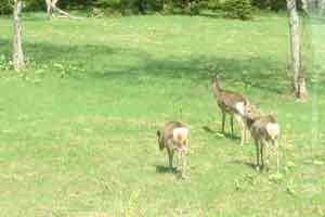 摩周湖へ向かう途中でえぞ鹿発見! なんだかとっても嬉しい気分。 山側は5月だというのに残雪が・・・。 |