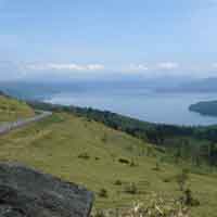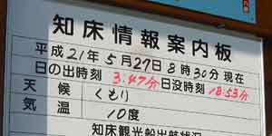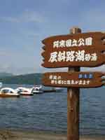 草むらには朝露が玉のようになり、湖の周りの桜には花がちらほらと咲いています。 霧の摩周湖と言われるほどに、このようにはっきりと摩周湖が姿を現すのは珍しいことだそうです。 私たちは心がけが良かったのか、なんて言ってる間に早くも霧が掛かってきました。 |