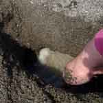 「岸辺の砂を掘ると温泉が出ます」と案内板が・・・ならば掘ってみましょう。