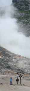 「硫黄山」その名の通り硫黄の臭いが、いいえ硫黄のガスが充満しています。