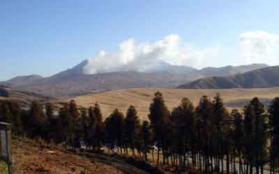 この駐車場で、阿蘇の噴火口から採取したという結晶を販売しているおばさんが居ました。 |