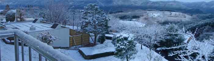 この積雪の所為で楽しみにしていた「九重“夢”大吊橋」は予定変更。残念ですが危ないしね〜。