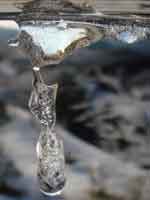 朝日が昇ってくると、ベランダの手すりに積もった雪が溶けかかってツララの芸術です。