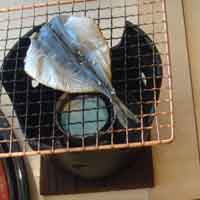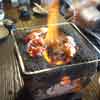 炭火で焼き鳥の油が燃え出したのには驚き。野菜は芹がついていました。