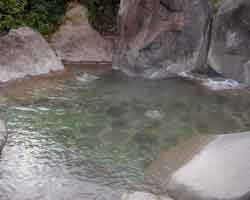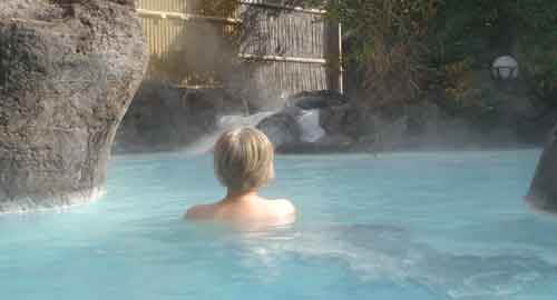 コバルトブルーの美しい温泉、広々しています。素晴らしい温泉を堪能しました。