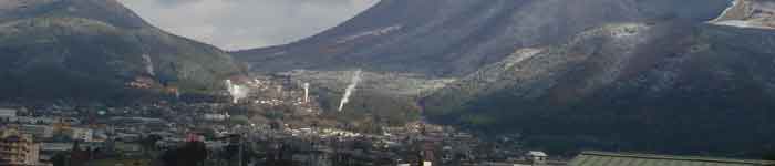 次の立ち寄り湯へむけて出発、山間のあちこちから湯気らしきものが見えます。