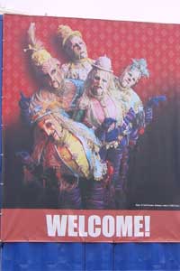 前回の『アレグリア』をバージョンアップさせた「アレグリア2」名古屋公演が、グリーンスパーク稲沢21の公園内にある新ビッグトップでありました。 入り口には写真スポットとしてコンテナの側面に2枚の写真が飾られていました。開場はまだまだです。余り人が集まってきたいないうちにと記念撮影をしました。