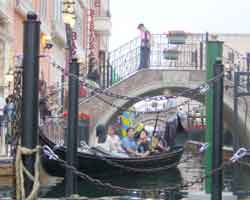 気を取り直して外に出ました。 アクセサリー店やカフェが立ち並んでいるイタリア風の町並みの中心に、運河が流れていてゴンドラが行き交っています。