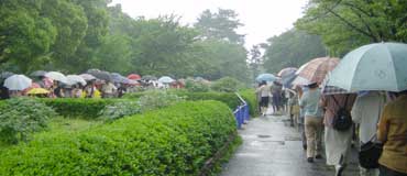 まずは雄のシャチから。しっかり触れました、首の辺りから尻尾の付け根まで。 ピカピカに磨き上げられたしゃちほこは、美しく眩しくひんやりとしていました。一旦外に出て、鯱を見るだけの入場口から入ると雄と雌両方のシャチが並んでいるのを見ることができます。 雌のほうが金が沢山使われているそうな・・・どこが違うのか、じっと見比べました。が、分かりません。 ただ目玉の位置が違うってことだけが分かりました。 雄の目玉は真ん中に、雌の目玉は目頭寄りに。何か謂れがあるんでしょうね。 緑がたっぷりの公園を、雨の中とは言えあわただしく見て周ったのが心残りでした。 季節ごとに咲く花や、先人たちが残した石垣の刻紋などを見つけに(一つだけ見つけましたが) もう1度訪れたいと思いつつ、名古屋城を後にしました。 |