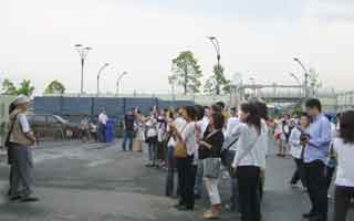 奥から店の方を呼んでくださいました。もうじきおにぎりができるとの事、待ちました。ホッカホカの出来立ておにぎりです。嬉しかったですよ、本当に。聞けば、コンビニは今までに2軒も潰れてしまったそうです。 会場の中への飲食物持込は禁止なので、家族連れの方たちが駅周辺のベンチでお弁当を食べていました。私たちも“ありがた〜いおにぎり”をほおばりました。