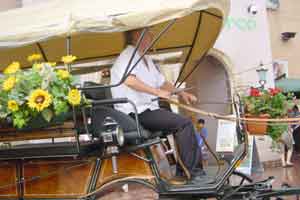 外に出ると花馬車が走ってきました。御者は見目麗しい女性です。