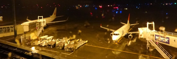 ホテルの部屋から夜の空港を見ながら就寝。不思議な感覚です。