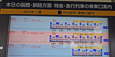 | 北海道の食べ物は格別においしく感じます。 これからの旅の始まりに備えてたっぷりと体力をつけることにしました。 南千歳駅から帯広へ出発です。 |