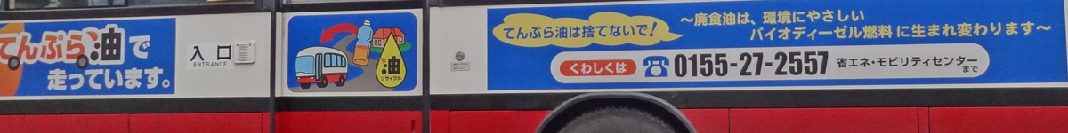 「3R]の見本のような環境にやさしい取り組みのバスです。心持、てんぷらのようなおいしそうな香りがします。