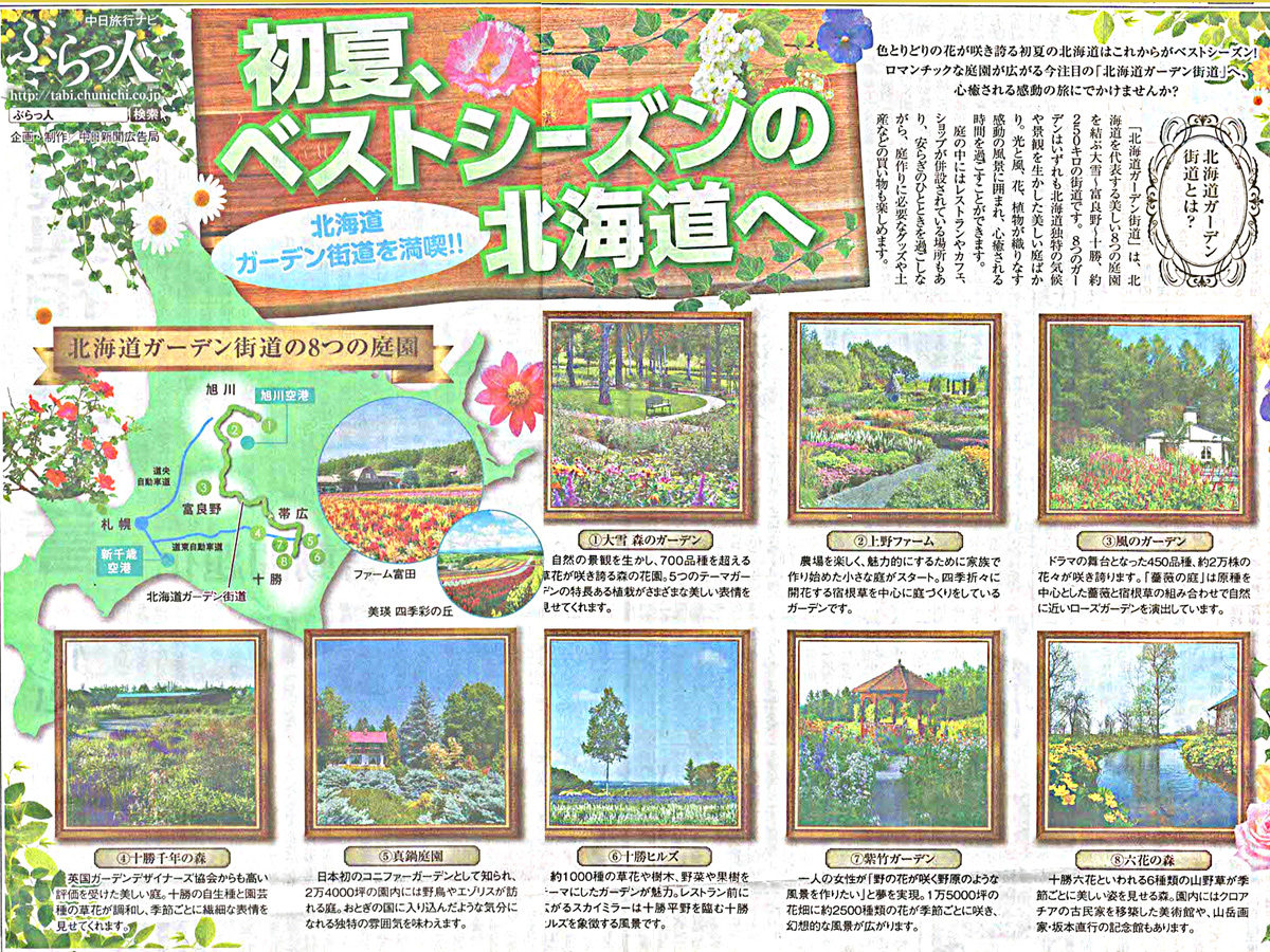 旭川~富良野~十勝を結ぶ約200Kの街道に集まる気候や景観を生かした庭園。