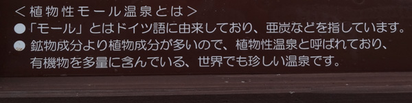ホテルの温泉に入ってびっくりです。モール温泉はまるで血の池地獄のよう、夜のうす暗い浴室内はたった一人で入っていることもあり薄気味悪い。何だろう、モール温泉って?数百年前海だった場所もあるという十勝平野にあった植物が長年かけて堆積したもの(泥炭)がモール温泉の基となっている。数少ない温泉でドイツにもあるという。