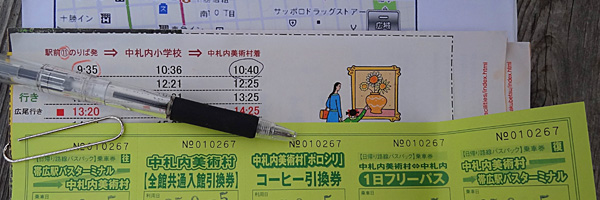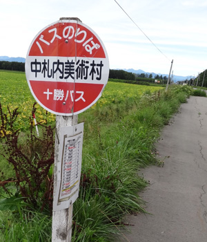 翌朝はカロリー取り過ぎ(自己責任です)の朝食を頂き、帯広バスターミナルから9時35分の周遊バスに乗りました。中札内美術村全館共通入場券付き、中札内ポロシリでのコーヒー引換券付きのお得なセットです。