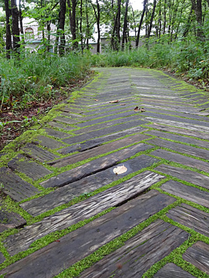 先ずは右端の地図に書いてある相原求一朗美術館から拝見します。苔むした木の歩道がとても歩きやすく、心が落ち着きます