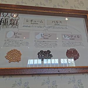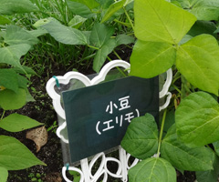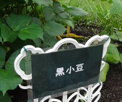 カントリープラザでお土産を物色後、豆資料館・ビーンズ邸へ。菜園には豆の種類が沢山植えつけられています。大豆、小豆と一口に言っていましたが種類はたくさん。驚きです。