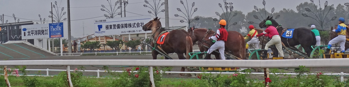 ばんえい競馬場、本日はレースを見に来ました。農耕馬なので逞しい足、がっしりとした体格。