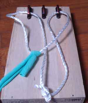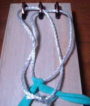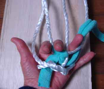 ![]() 6 布を結んだロープの下から 結び目を手元に引っ張ってくる topへ戻る |