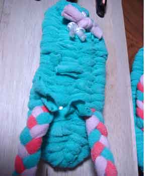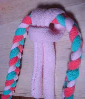 ![]() 34 三つ編みはかさ張るので解いて1本ずつ結ぶ |