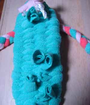 | ● | トレーナーを横に切り裂く(横7センチ幅で脇の片方を開きひも状にする) |