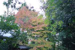 夕暮れ時の所為でしょうか、ひっそりとしたたたづまいが寂しさを誘います。苔庭を覆い尽くす散紅葉がもっとも美しいと言われています。