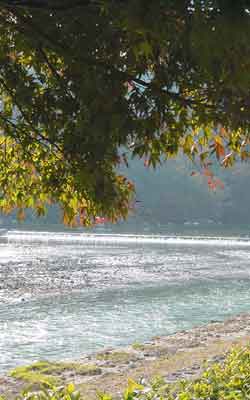 遊覧船やボートがたくさん出ていて川遊びが堪能できます。渡月橋の上から餌を投げる観光客、それをめがけて上手にキャッチする水鳥。