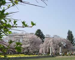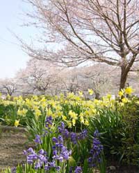 境内には沢山のソメイヨシノや枝垂れさくら、ラッパ水仙が植えられ訪れる人々を楽しませてくれます。