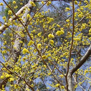 黄色い花をいっぱいつけた木を見つけました。 サンシュユのようです。 サンシュユ(山茱萸)は別名ハルコガネバナ、アキサンゴとも呼ばれる中国・朝鮮原産のミズキ科の落葉広葉樹です。樹皮が褐色を帯び、花は早春2〜3月頃に葉に先立って枝一面に黄色の小さな集合花を咲かせます。 ![]() |