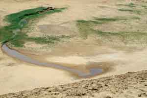 | 砂丘の内部は常に水分を保っていて、 雨が多い時期になると、一時的に砂漠のごとくオアシスが現れます。 この広い砂丘、歩きつかれて迷子になったらなんとしょう。と、思われる方もいらっしゃるでしょうね。 |