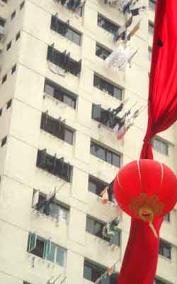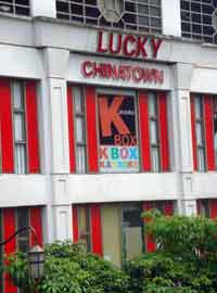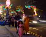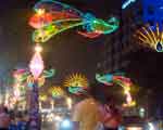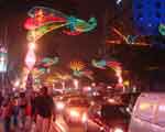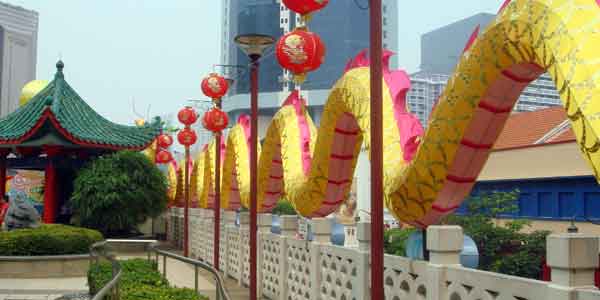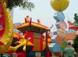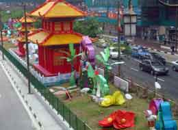 中秋祭の飾り付けが色鮮やかでチャイナカラーに染まっています。