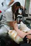 | 見るもの全てが珍しいので、歩いて歩いて歩いて。 何でも見てやろうって精神です。 が、さすがに足が痛くなってきました。 歩きやすい靴を選んできたつもりでしたが、疲れが出てきたようです ショッピンモールの一角に足つぼマッサージの看板。 まさに助けの神。 30分2千円のコースを4人が注文しました。 |