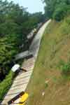 2回目は十分に楽しめました。これは負け惜しみではありません。 時間さえあれば、もう一度やってみたいな・・の気分です。 滑り降りたリュージュは、リフトにぶら下げられて、山頂へと回収されてゆきます。 |