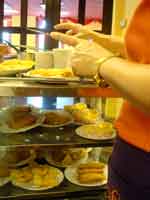 中秋祭では必ず食するという月餅です。 一個600円くらいになります。 店によってずいぶんと味が違うそうです、もちろん値段のほうも。 スーパーマーケットでも沢山箱入りで販売していました。 ○○ホテルの月餅が美味しいとか。 甘くってとても一人では食べきれません。 一個を6等分してちょうど良いくらいの甘さでした。 |