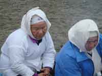 | 海女さんたちは白い磯着の下には、スエットスーツを着込んでいます。 | ![]() |